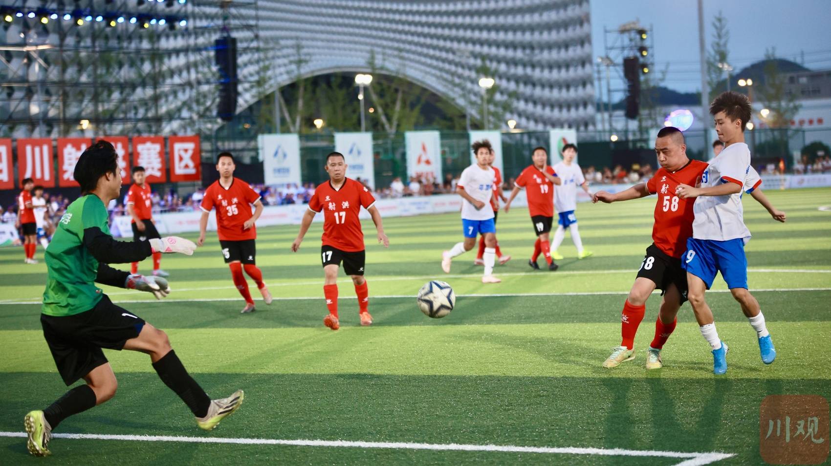 当晚7点,射洪足球代表队与贵州榕江足球代表队的交流赛正式打响。比赛开场10分钟,贵州榕江足球队率先破门,攻进一球。随后,射洪足球代表队全力反击,不到3分钟,扳平比分。最终,通过激烈角逐,贵州榕江足球代表队以4比2胜出。