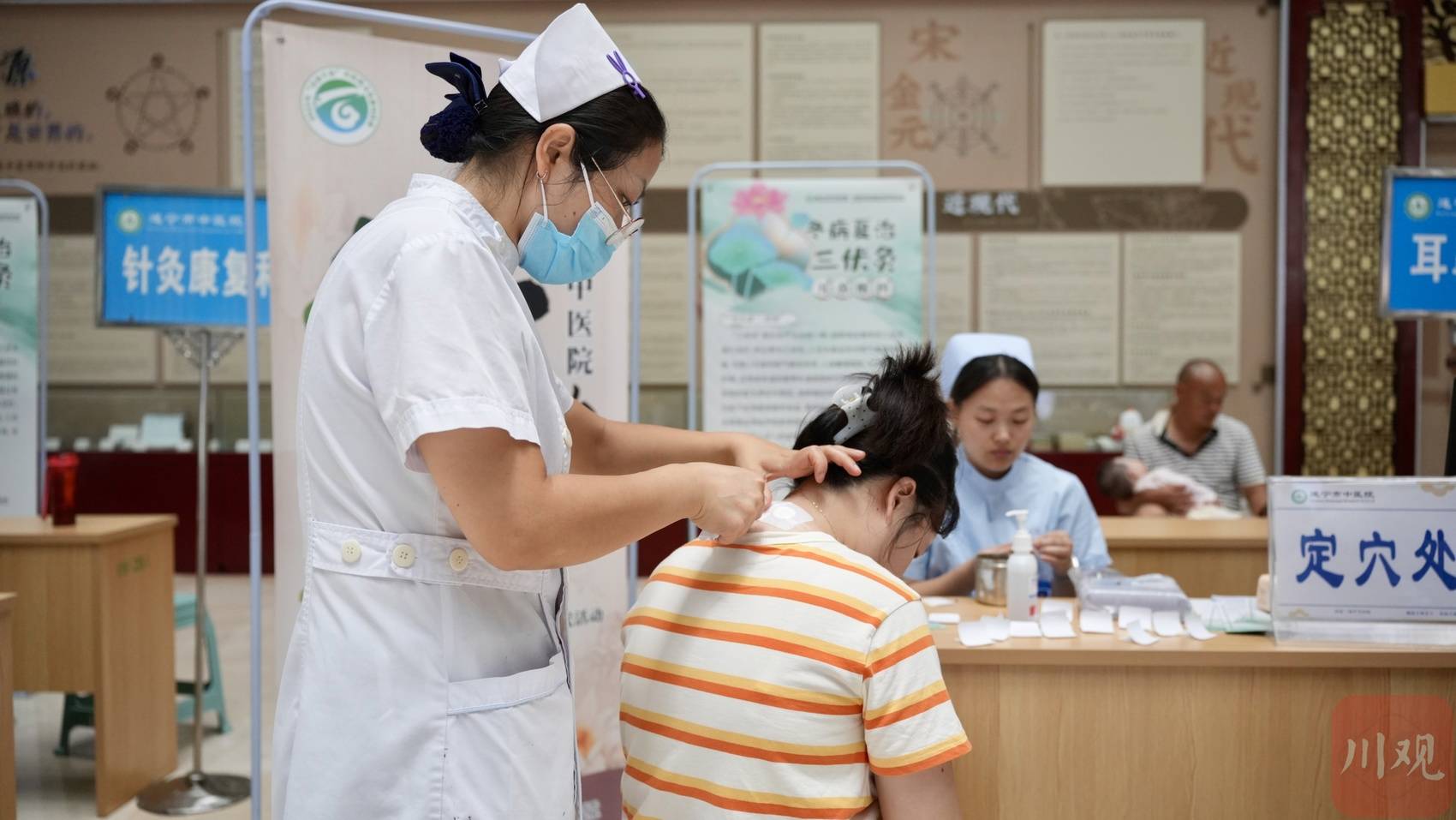上午8点,遂宁市中医院一楼门诊大厅排起了长队,儿科、针灸康复科、脾胃肝病科、肿瘤科等11个科室专家现场“摆摊”看诊。针对不同健康问题,各科室采用三伏贴、隔姜灸、熏蒸等不同中医特色治疗方案。
