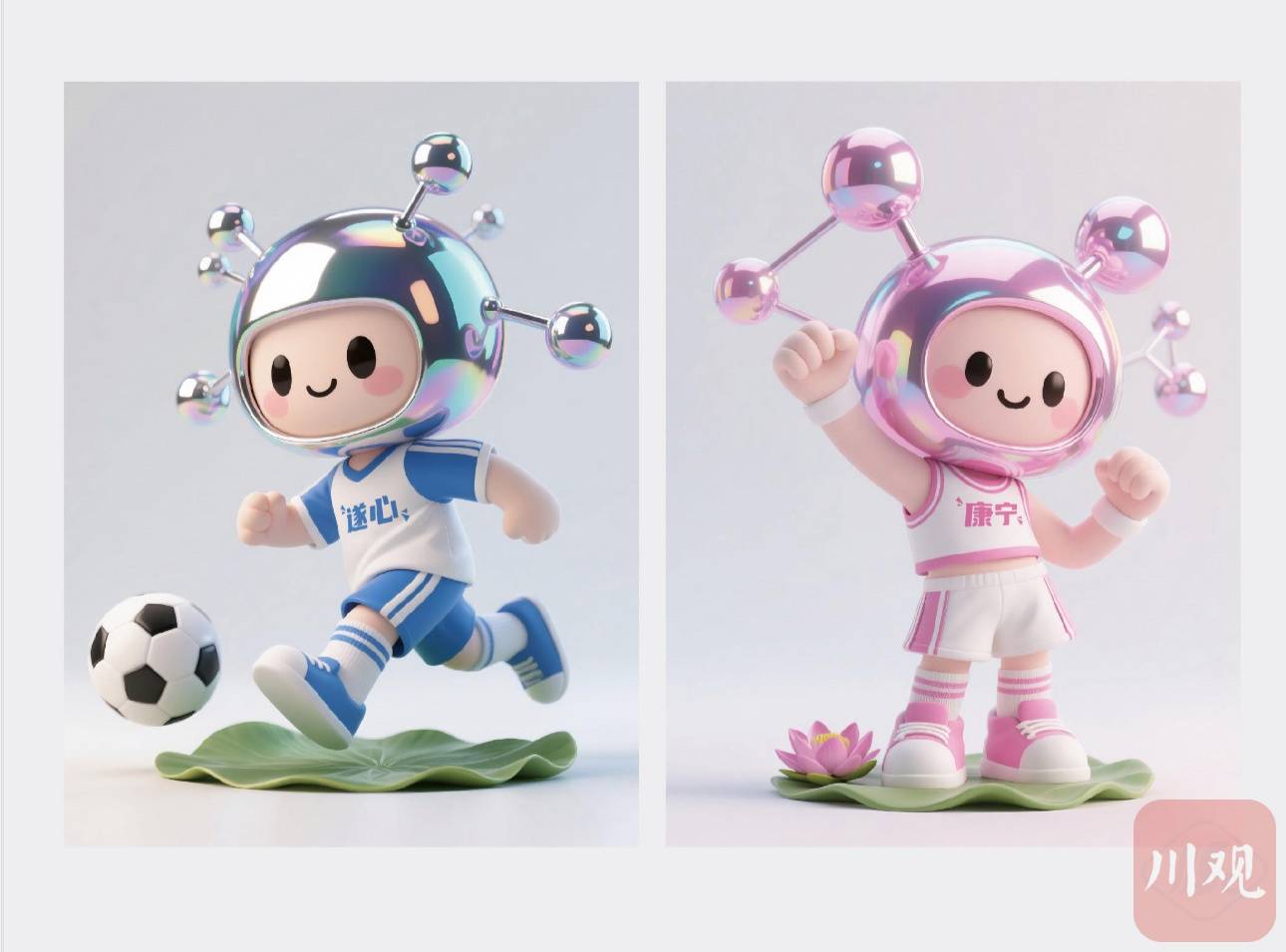 吉祥物“遂心”与“康宁”以“锂想能量,荷你争锋”为创意理念,完美结合了遂宁“锂电之都”的活力与“莲花之乡”的优雅,象征着球队如锂电般充满能量、潜力无限,像荷花一样奋发向上、纯净竞技。