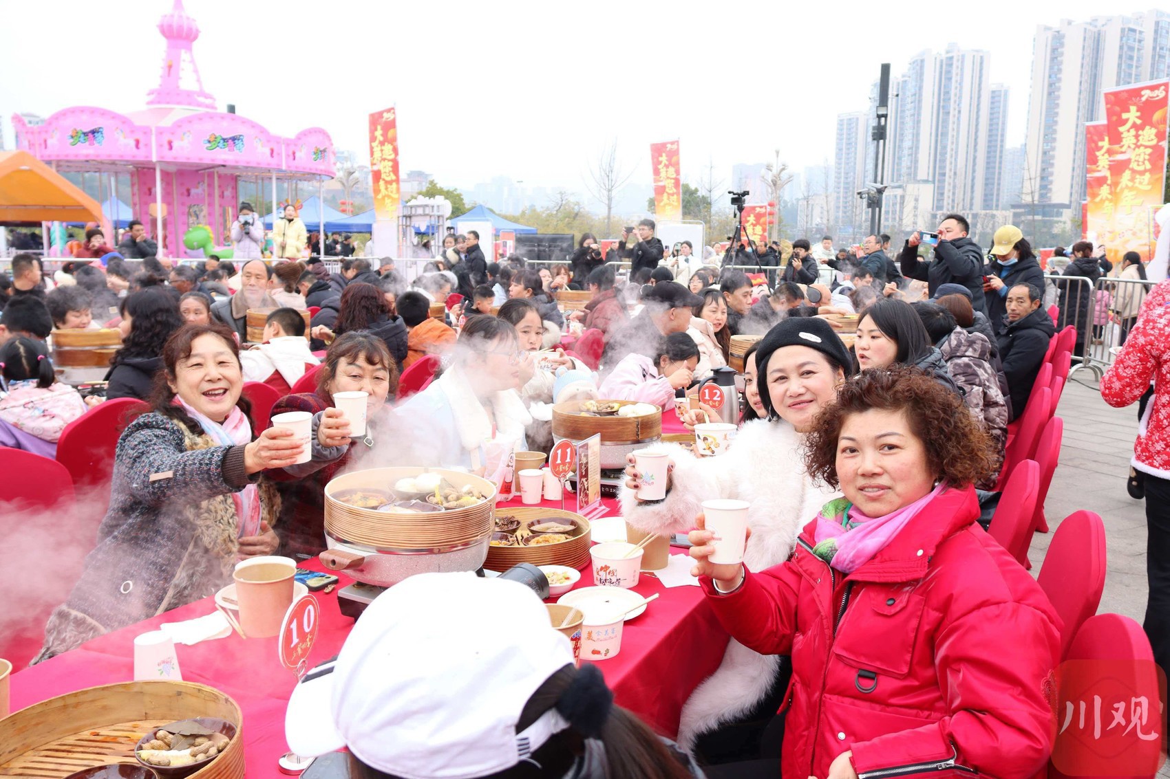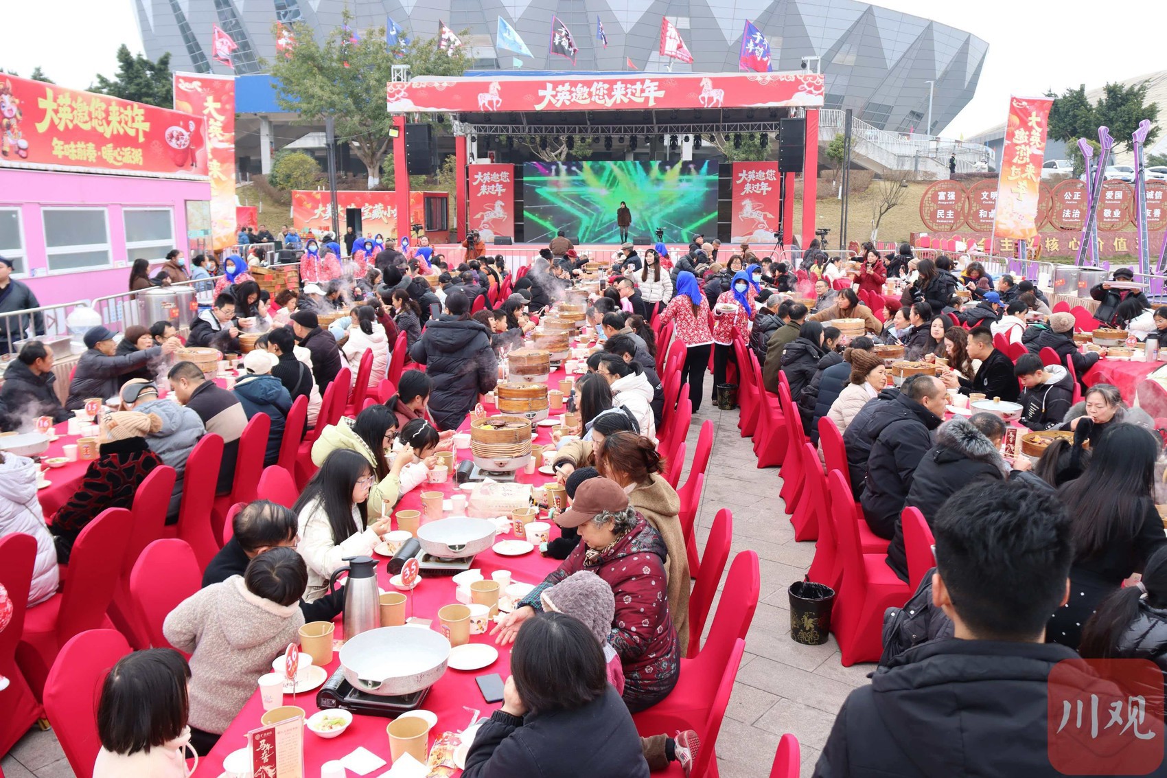 本次新春活动以20场特色活动,从腊八节起持续至元宵节。发布会当天,免费腊八粥、长桌宴热闹开席,新春年货节、非遗巡游、文艺下乡等活动让城乡同庆。此外,宋井桃源首届宋风中国年活动将为游客带来万灯辉映的沉浸式宋韵体验,卓筒井千年盐韵与宋代上元盛景将在此交融。立足中医药文化,隆盛镇推出主题村晚与“寻年味”嘉年华,非遗火龙、国潮音乐、养生集市等内容,让游客在乡音民俗中重拾儿时记忆。