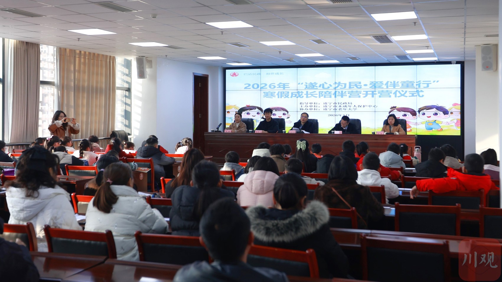 2月2日,2026年“遂心为民·爱伴童行”寒假成长陪伴营开班仪式举行。本次寒假成长陪伴营主要面向遂宁6—12岁身体健康的困境儿童免费开展托管服务,共招募40余名儿童,包括孤儿、事实无人抚养儿童、留守儿童、低保家庭儿童及流动儿童等群体。