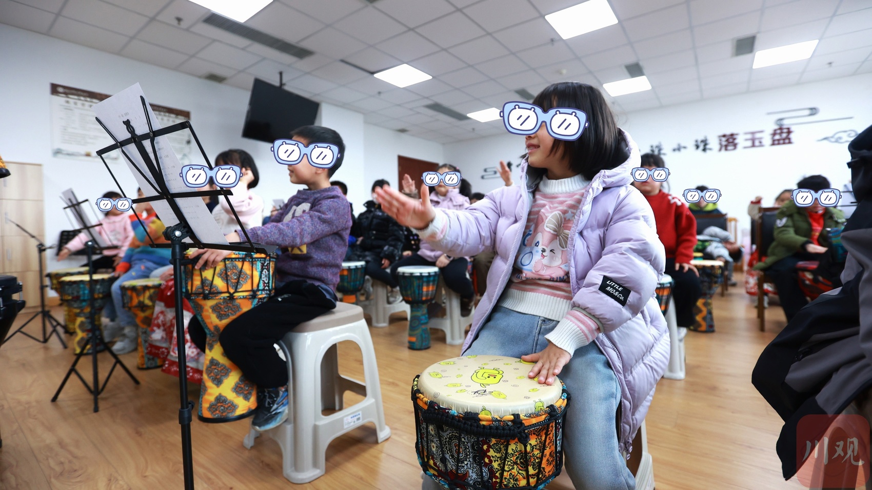 “妈妈上班很忙,平时都是奶奶带我们,这次我和弟弟一起来上托管班,可以打非洲鼓、学画画,还认识了新朋友,很开心!”10岁的小杰对即将要学的非洲鼓音乐课满是期待。
